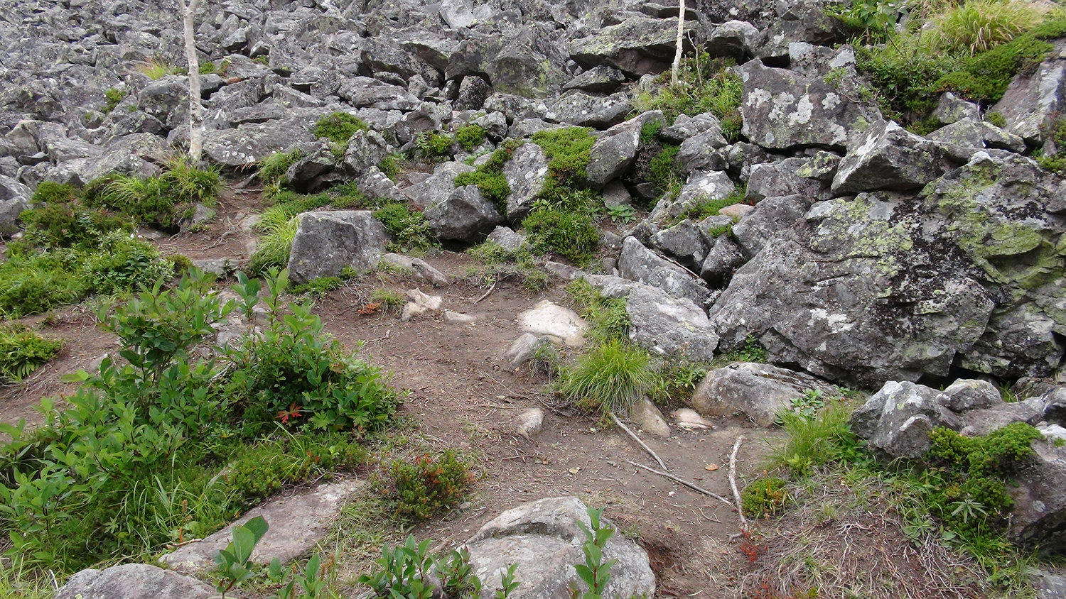 イソツツジ、ガンコウランなど貴重な植物の茎や幹が踏み倒され、根が踏みしだかれ、回復が困難な状態です。